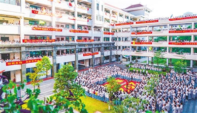 5月21日早上,海南中学为2021届学生举办了“荣耀与共,高考加油”喊楼助力活动。活动中,高三年级的21个班级约900名学生喊出青春宣言,齐声高唱歌曲《我相信》,为迎战即将到来的高考加油鼓劲。