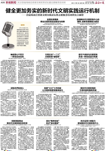 5月26日至29日,首届海南自贸港文明实践论坛暨志愿服务培训班在海口举行。国内知名专家学者和来自全国多地的新时代文明实践工作者在论坛的圆桌会议和专家发言环节中,为海南自贸港文明实践发展献言献策。本报对发言内容进行摘登。