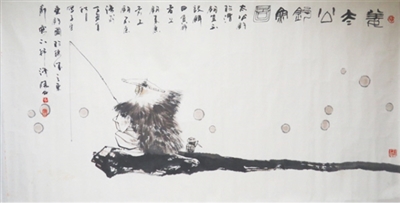 《姜太公钓鱼图》(国画) 李晓白 作