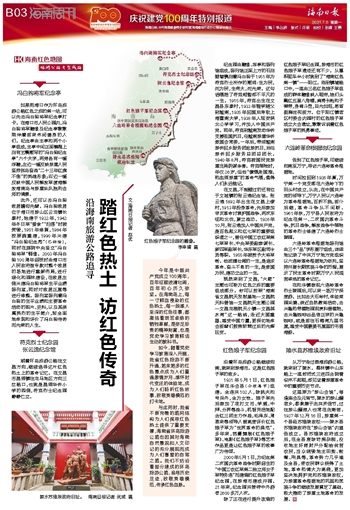 文\海南日报记者 赵优今年是中国共产党成立100周年,百年征程波澜壮阔,百年初心历久弥坚。在海南岛上,每一寸鲜血浸染的红色热土,每一段感人至深的红色往事,都凝结着艰苦卓绝的牺牲奉献,是弥足珍贵的精神财富,也是党史学习教育鲜活生动的教科书。