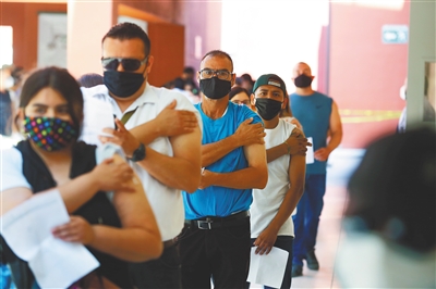 在墨西哥蒂华纳,人们接种新冠疫苗。 新华社/路透