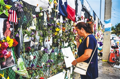 这是7月24日在美国佛罗里达州迈阿密-戴德县住宅楼坍塌事故现场附近拍摄的悼念墙。