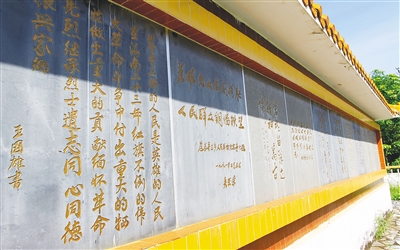 海口市苏寻三乡人民革命纪念亭内的题词,苏寻三乡是琼文革命根据地的组成部分。 海南日报记者 宋国强 摄