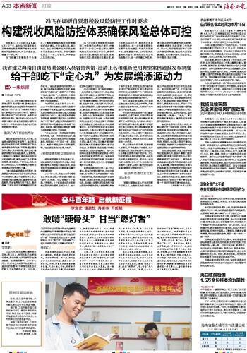 “建立典型案例通报发布制度,就是要坚决贯彻落实习近平总书记和党中央的要求,通过不定期发布公职人员容错纠错、澄清正名、重新使用的典型案例,向全省释放为敢于担当、踏实做事、不谋私利的干部撑腰鼓劲的强烈信号。”省纪委监委相关负责人介绍,建立典型案例通报发布制度,就是要破除“洗碗效应”,激励广大干部放下包袱、甩开膀子,大胆探索,大胆实践,大胆创新,以更加奋发昂扬的姿态投身于自贸港建设。