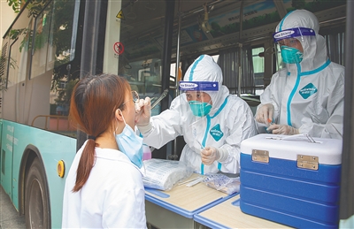 为缓解核酸检测压力,满足市民需求,8月10日,海口市卫健委增加一辆移动核酸采样车,在海口市龙华区义龙中学采样点为市民提供核酸检测。 本报记者 陈若龙 摄