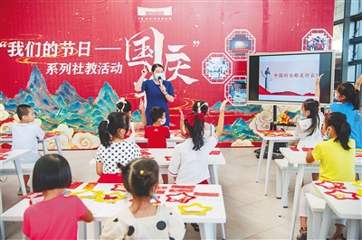10月1日,中国(海南)南海博物馆举办“我们的节日——国庆系列社教活动”,吸引一批小朋友和家长参加。他们在工作人员的引导下参观了博物馆的荆楚文化特展,为党旗、党徽、天安门等拼图上色,并通过听歌识曲抢答优秀歌曲歌名。系列活动旨在让小朋友们从小树立起爱党爱国意识,更加珍惜今天的美好生活。特约记者 蒙钟德 摄