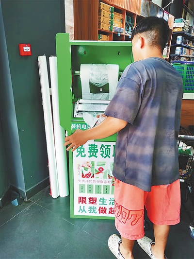 海南日报记者在保亭某超市门口处看到,一台自助环保袋发放机吸引了许多围观者,不少好奇的群众拿出手机准备扫描二维码。“领取的操作挺简单的,不到两分钟就搞定了,每人每天可以免费领取2个,这种袋子结实又环保,以后逛超市就不使用普通塑料袋了。”市民王女士说道。