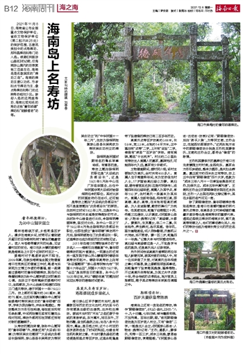 除了期颐偕老坊、耆年硕德牌坊等知名寿坊,像海口市涌谭村重修的明代莫氏贞寿坊、临高县多文村吴峘辅的耄耋齐眉坊等也是海南寿坊的重要代表。通观这些获立牌坊的海南乡民,莫不是高寿有德之人,他们的事迹教化后人,他们的寿坊也成为海南长寿文化的历史名片之一。