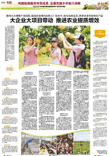 2、粮食播种面积35.1万亩,粮食总产量约13.52万吨;油料播种面积约4.53万亩,总产量约7936吨;甘蔗播种面积约8.91万亩,总产量约27.79万吨;蔬菜播种面积约25.52万亩,总产量约34.81万吨;瓜果类播种面积约5万亩,总产量约20万吨;水果总面积约13.67万亩,总产量约12.60万吨。