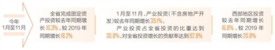 分地区看,西部地区投资快速增长、领衔全省,东部地区投资增速平稳。1月至11月,西部地区投资较去年同期增长16.8%,较2019年同期增长20.8%,两年平均增长9.9%;东部地区投资较去年同期增长10.0%,“海澄文定”“大三亚”等重点区域投资分别较去年同期增长5.6%和16.0%。