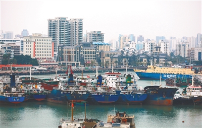 12月19日,为防范今年第22号台风“雷伊”,大量船只停泊在海口市海甸溪避风。 本报记者 李天平 摄