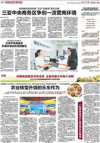 “企业办事效率提升,工程项目建设前期费用减少,审批效率提高。”园区企业负责人不由感慨。今年以来,三亚中央商务区管理局对标国际国内先进城市,加快制度集成创新,加强信用体系建设,争创一流营商环境,有力推动园区高质量建设、超常规发展。