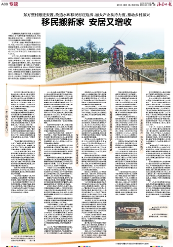 近年来,南尧村、报英村、公爱村、佳头村美丽家园建设工程等10个移民村庄在东方建成,同时该市结合脱贫攻坚等工作的开展,移民村的道路、供电、饮水、通讯、社会保障实现全覆盖,移民村的生产生活条件发生了显著变化。
