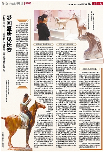 12月11日,由省旅文厅、陕西省文物局联合主办的“长乐未央——大唐长安文物展”在海南省博物馆开幕。来自陕西历史博物馆、西安博物院、乾陵博物馆、西安市长安博物馆、宝鸡市凤翔区博物馆、昭陵博物馆等6家文博单位的116件(套)唐代文物精品齐聚海南,再现长安的繁盛气象和非凡魅力。