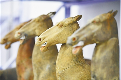 江村大墓与薄太后南陵出土的彩绘陶俑。 新华社发