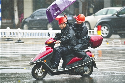 ②12月20日,琼海市民在风雨中出行。 特约记者 蒙钟德 摄