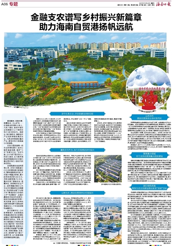 碧海椰林、田园村寨、南繁硅谷、火山矿坑……在海南自贸港的土地上,凡有人烟处,皆有中国农业发展银行(以下简称农发行)投注的目光。旅游业、现代服务业、高新技术产业和热带特色高效农业,凡是自贸港建设重点产业,便有农发行海南省分行的身影。农发行是我国唯一的农业政策性银行,始终以服务国家战略、服务“三农”发展为己任,“支农为国、立行为民”是农发行人的初心使命,全力服务海南自贸港建设和乡村振兴事业是农发行人新时代的责任担当。