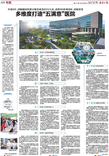 6年来,海南省肿瘤医院荣获全国改善医疗服务示范奖、国家癌症靶向治疗规范化示范单位、院士团队创新中心、海南省五一劳动奖等30多项荣誉,它多维度办院,有态度、有高度、有温度、有气度……以预防保健托底、医疗技术为经、人性关爱为纬,为患者密织起充满生命关怀的肿瘤治疗康复网。