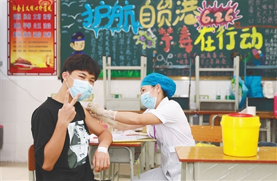 图❶琼中一名学生接种新冠疫苗。本报记者 李天平 摄