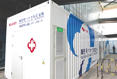 ① 12月21日,海口市秀英区新海港新安装的移动方舱实验室。