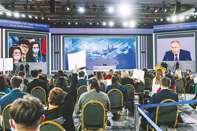 俄罗斯总统普京23日在莫斯科举行年度大型记者招待会,在近4个小时里回答了55个问题,涉及俄经济发展、新冠疫情、俄中关系以及俄与西方关系等问题。分析人士指出,内政方面,重振经济仍是未来俄政府执政重点;外交方面,普京强调加强俄中合作有助于世界稳定;在近段时间趋紧的俄罗斯与西方关系问题上,普京重申绝不允许北约东扩同时,也表达了对话意愿。但由于俄罗斯与欧美国家在乌克兰等问题上矛盾颇深,近期双方关系恐难有明显转圜。