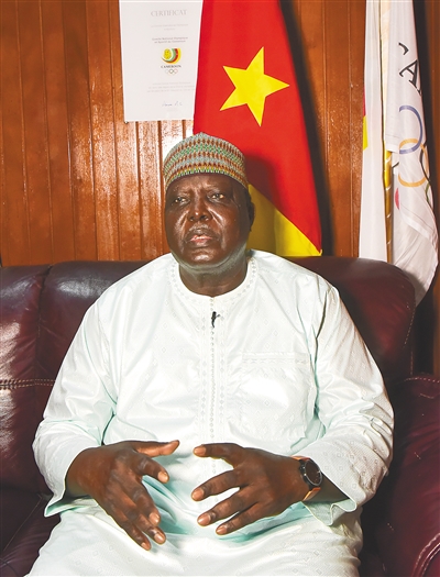 2021年12月29日,喀麦隆奥委会主席马尔博姆在首都雅温得接受采访。