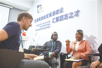 日前,在海口国际人才之家举办的创业孵化班上,外籍人才围绕创业展开交流讨论。