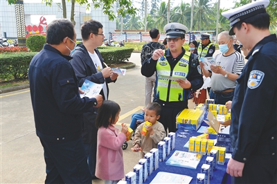 1月8日警营开放日,交警向群众宣讲交通安全知识。