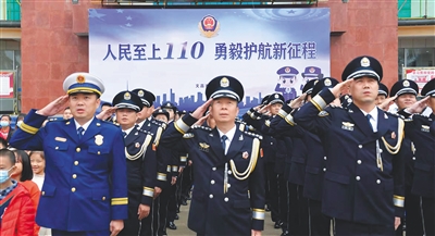 2022年1月8日,文昌市公安局警营开放日,举行升旗仪式。