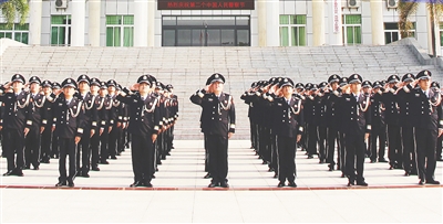 第二个中国人民警察节来临之际,乐东县公安局全体民警向警旗敬礼。