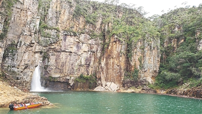 1月8日在巴西米纳斯吉拉斯州卡皮托利乌市福尔纳湖旅游区拍摄的崖壁坍塌事故现场。 新华社/路透