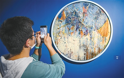 市民对《海岛3号》(布面油画)充满兴趣。 海南日报记者 袁琛 摄