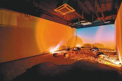 站在一片由墙上的投影影像和地板上的沙粒共同打造的“沙滩”前,白翠萍啧啧称奇:“这种艺术形式我还是第一次见,以前见到的画展都是在平面上的,但是现在看着好像都活起来了。好像我就站在海边,海水正朝着我涌过来。”