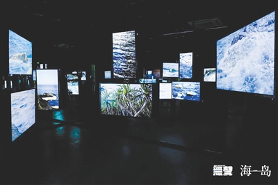 例如在这次展览中,第二部分通过多维投影再现海岛场域,观众可以置身其中,随着声音和光线的变化,深度感受大海、椰林、海浪、礁石带来的独特的海岛气息。这也是对于引发艺术家创作思考的场域的还原。第三部分则通过影像装置,以散点视角,通过碎片式的表达描绘大海与岛屿之间永恒的依存关系,展现艺术家脑中的记忆之海与心中的意境之海。