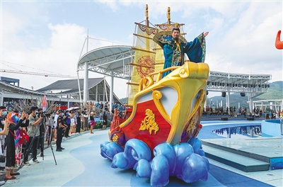 本报三亚1月15日电 (记者李艳玫)1月15日,三亚丝路欢乐世界二期“红动三亚”开园迎客,吸引众多游客进园参观体验。三亚丝路欢乐世界是由陕西旅游集团携手北京春光集团共同打造的文旅项目,总投资20亿元。据了解,三亚丝路欢乐世界规划红色记忆、红动三亚、星辰大海三大主题区。其中,项目一期“红色记忆”主题区已于2018年6月建成开园,打造《红色娘子军》和《琼州阻击战》两台红色实景演出;项目二期“红动三亚”主题区打造游客服务中心、文创体验中心、红动三亚喷泉广场、一棵树亲子乐园研学营地、球幕影院、旋转太空梭、旋转木马等项目,融合舞台装置秀、喷泉水秀、巡游演出、科技互动等多种体验形式;项目三期“星辰大海” 规划有特色剧场、科普展馆、游乐设施等体验项目。