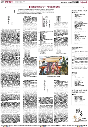 由海南省民族宗教事务委员会、海南日报报业集团联合主办,天涯杂志社、海南省民间文艺家协会、琼台师范学院音乐学院协办,以“百年铸魂·勿忘初心”为主题的2021年海南少数民族文化“七个一”作品征集评选活动,经过9个月的征集,各方作者踊跃投稿。2022年1月9日,作品征集评选活动颁奖仪式在海口举行。本版择取部分获奖作品刊出,以飨读者。