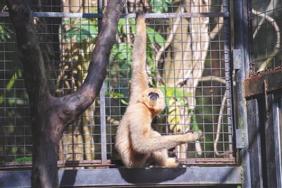 海野目前饲养着海南长臂猿的近亲——一只年龄为8岁的北白颊长臂猿“亮亮”。自2018年6月被救助以来,经过4年的精心照料,“亮亮”已成长为健康活泼的“小伙子”,海野的动物管理团队也在长臂猿的饲养方面积累了大量经验。 根据相关规定,“命大”将单独在展区内度过适应期。海野预计将于2月14日安排“亮亮”和“命大”合笼。图为抵达海野的雌性北白颊长臂猿“命大”。