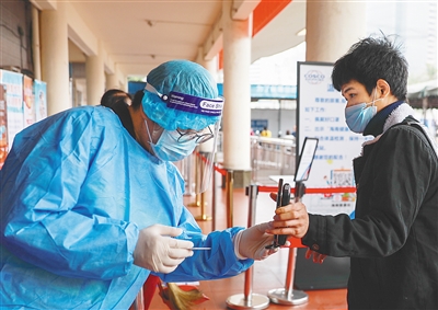 1月17日,在海口秀英港,工作人员查验旅客的健康码。 本组图片均由本报记者 李天平 摄