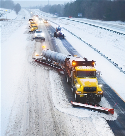 1月16日,铲雪车在美国北卡罗来纳州40号州际公路上清理积雪。