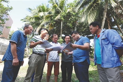 文昌政府工作人员进村为村民办理房屋报建手续。本文图片均由本报记者 袁琛 摄