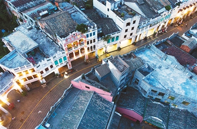 迥异于不远处的潮涨潮落,被海环抱的百年骑楼老街更愿意静默着。在建成之初,这里曾是海南岛内外贸易的窗口,是连接祖国内陆和南洋的重要中转站,大量资金、人员、货物在此流动。浓重的商业气息,代理业、百货业和餐饮业的发展,催生了骑楼老街的一个个品牌商号,“骑楼林立,商贾络绎,烟火稠密”,就是当时海口兴盛景象的真实写照。