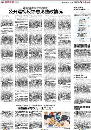 根据省委巡视工作部署,2021年3月至6月,七届省委对省委办公厅等20个党组织开展第九轮巡视。近日,省委深改办(自贸港工委办)、省医保局党组、海南大学党委、海垦集团党委、省机关事务管理局、省住房公积金管理局党组向社会公开巡视整改进展情况。
