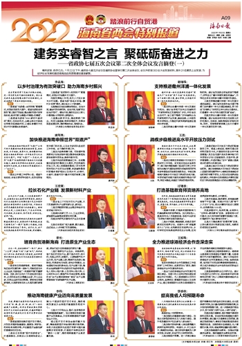 畅所欲言,各抒己见。1月22日下午,省政协七届五次会议在省政协会堂举行第二次全体会议,会议共收到383份大会发言材料,其中20名委员上台发言,为经济社会发展和推进海南自由贸易港建设建言献策。