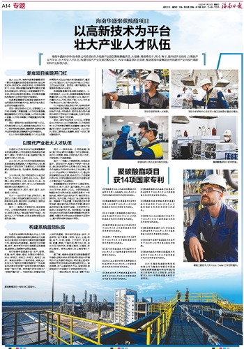 海南华盛新材料科技有限公司投资的东方临港产业园区聚碳酸酯项目,大规模、高规格招才、用才、育才,面向经济主战场,以高新产业为平台,壮大专业人才队伍,构建与现代产业发展匹配软实力,科学丰富蓝领队伍资源,推进海南华盛集团由传统建材产业向现代高新材料产业转型升级。新年项目实现开门红