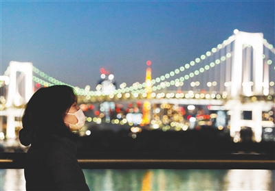 图为戴口罩的游客在日本东京御台场海滨公园游览。 新华社/路透