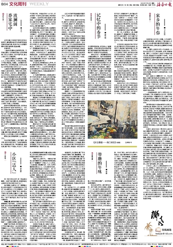 那一年的除夕日,上午,春雨霏霏,被清冽的春风缠裹着扑到人脸上,有几分惬意,但很快便雨停天晴。此刻,艳阳在天上,万物盎然。身为糖厂管理者,每逢大年三十这一天,在处理毕手头的事务后,我总要到各车间给大伙拜年。卸蔗场是露天作业工段,一车车濡染着山野气息的甘蔗在这里被吊上喂蔗台,在阳光照射下散发出一股浓浓的甜味儿。我到卸蔗场时,恰逢交接班时刻,仰头望去,见一位青工一脸笑意,咚咚咚蹬上蔗场龙门吊车,将一张红红的“福”字和一张饱含美好愿景的年画张贴在吊车操控室的外壳上。我向他挥挥手,然后抱拳拜年。他乐滋滋地朝我喊道:“过年了,年画一贴好运来!”言毕,小伙子开启了龙门吊车。咣当一声,那装饰着年画和“福”字的吊车在长长的吊梁上来回运行,朝偌大的卸蔗场撒播着农历新年的祝福。