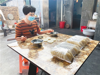 文昌市东郊镇建华山村村民符玉芳在制作酥饺。