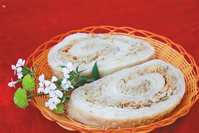 猪肠粑口感细腻有嚼劲,花生碎、椰丝、芝麻等配料被卷于其中,更添几分清香。据万宁制作猪肠粑的老师傅介绍,做猪肠粑要选上好的糯米,这样做出来的粑才能存放较久;如果选用质量差的糯米,猪肠粑有可能卷不成肠状,而且不能久放。