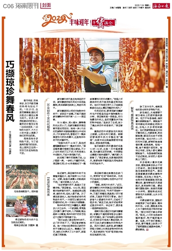 海南岛有许多特色干货。为了迎接虎年春节的到来,岛上居民正在用一双双巧手赶制特色干货。