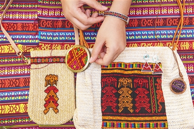 与母亲不同的是,符慧莉把文创作为自己黎锦事业的方向。她把织好的黎锦图案贴在银镯上,或包在耳环上,成为具有浓郁黎族特色的饰品,让人眼前一亮。在她看来,只有更好地注重实用性和时尚性,黎锦才能为更多人所接受。